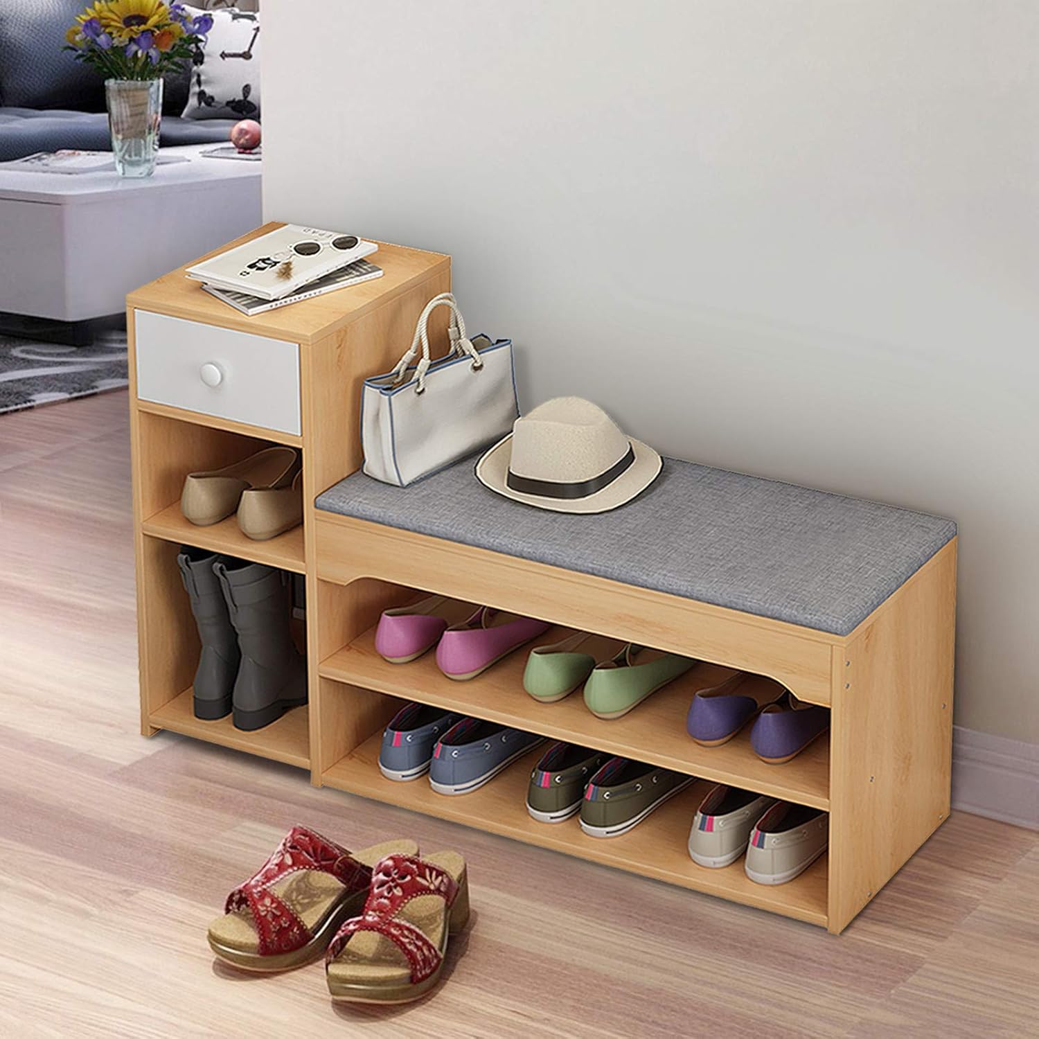 The top seat cushion is padded with soft and high-resilience sponge which provides you a comfortable seat for changing shoes.